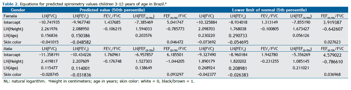 Ln VEF1 = Ln estat x 2.30 + Ln idade x 0.531 – 11.950